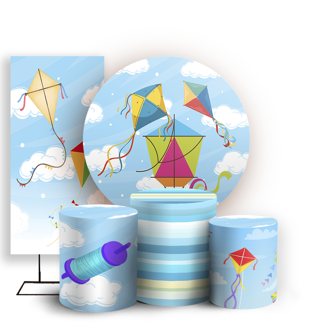 Com o kit Redondo, Trio de capas e Faixa lateral você criar uma decoração criativa para qualquer festa ou evento.