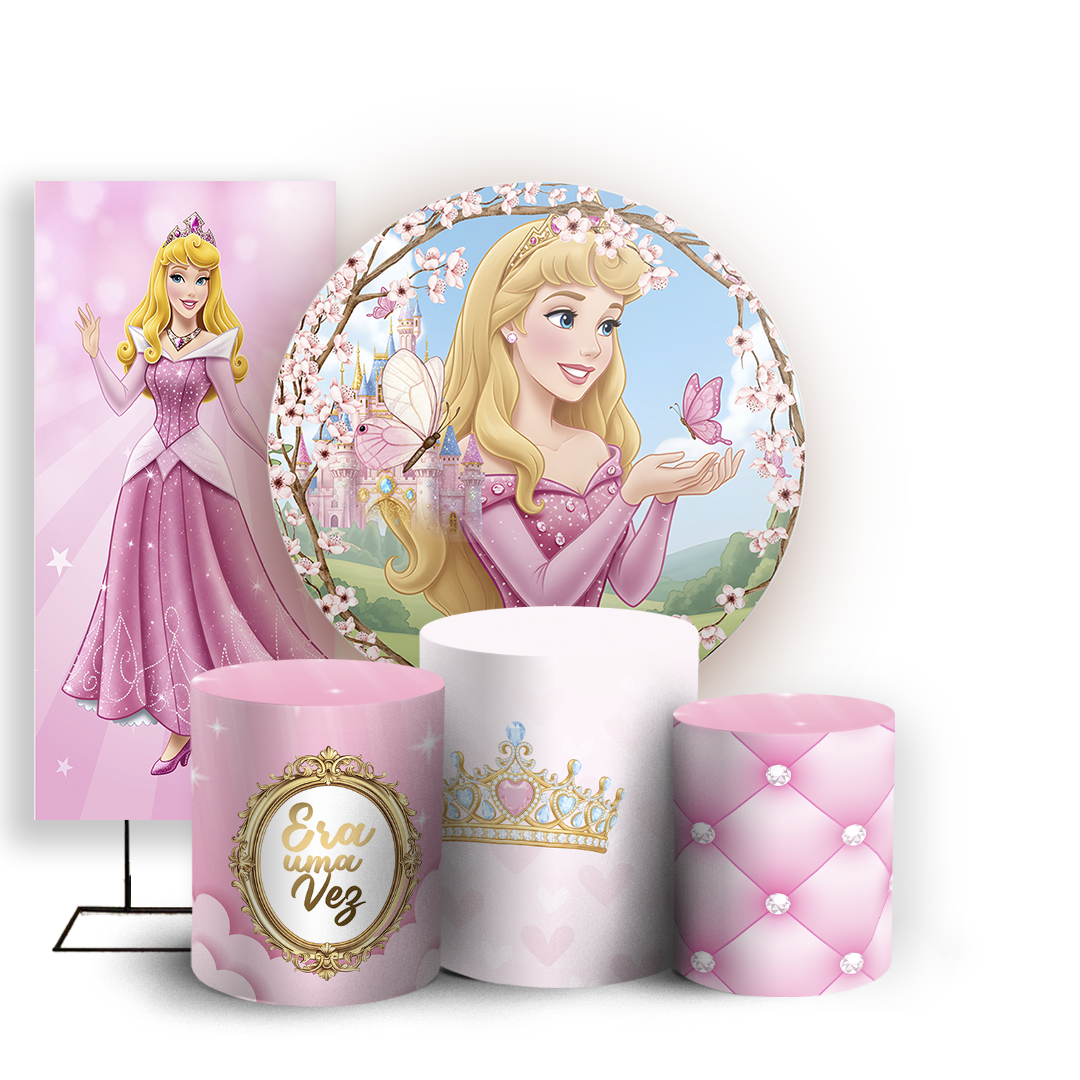 KIT Redondo Trio e Faixa Sublimado 3D - Princesa Aurora