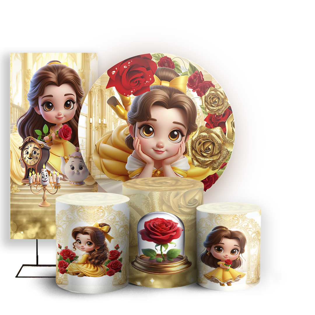KIT Redondo Trio e Faixa Sublimado 3D - Princesa Bela