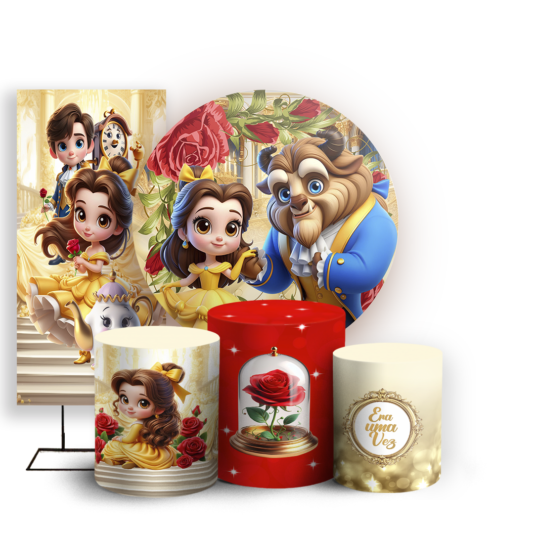 KIT Redondo Trio e Faixa Sublimado 3D - Princesa Bela