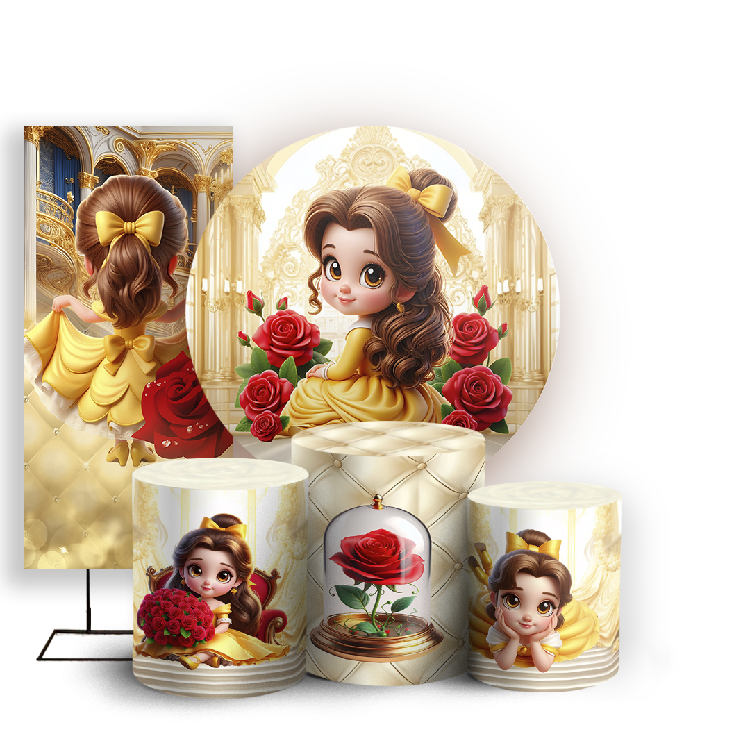 KIT Redondo Trio e Faixa Sublimado 3D - Princesa Bela