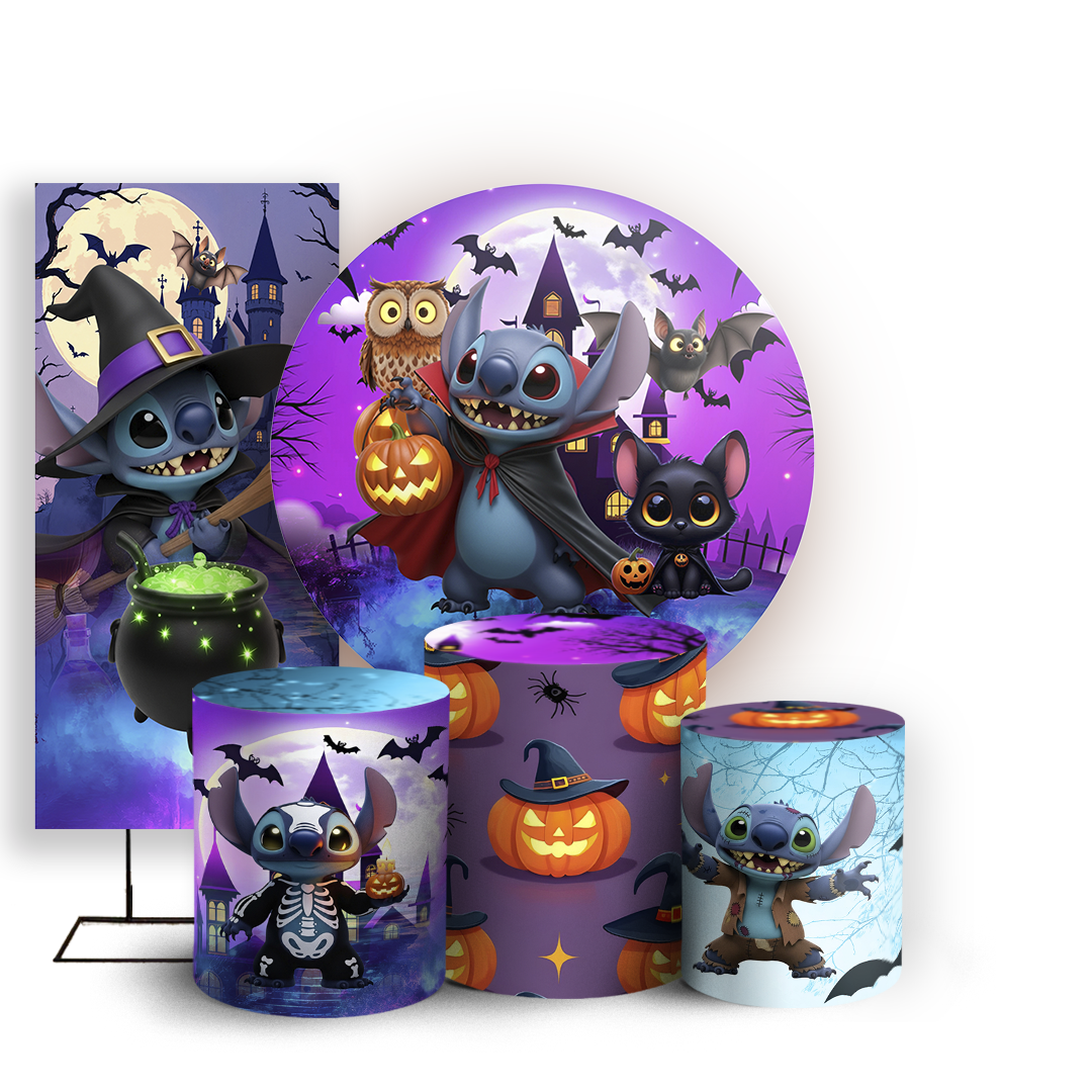 KIT Redondo Trio e Faixa Sublimado 3D - Stitch Halloween
