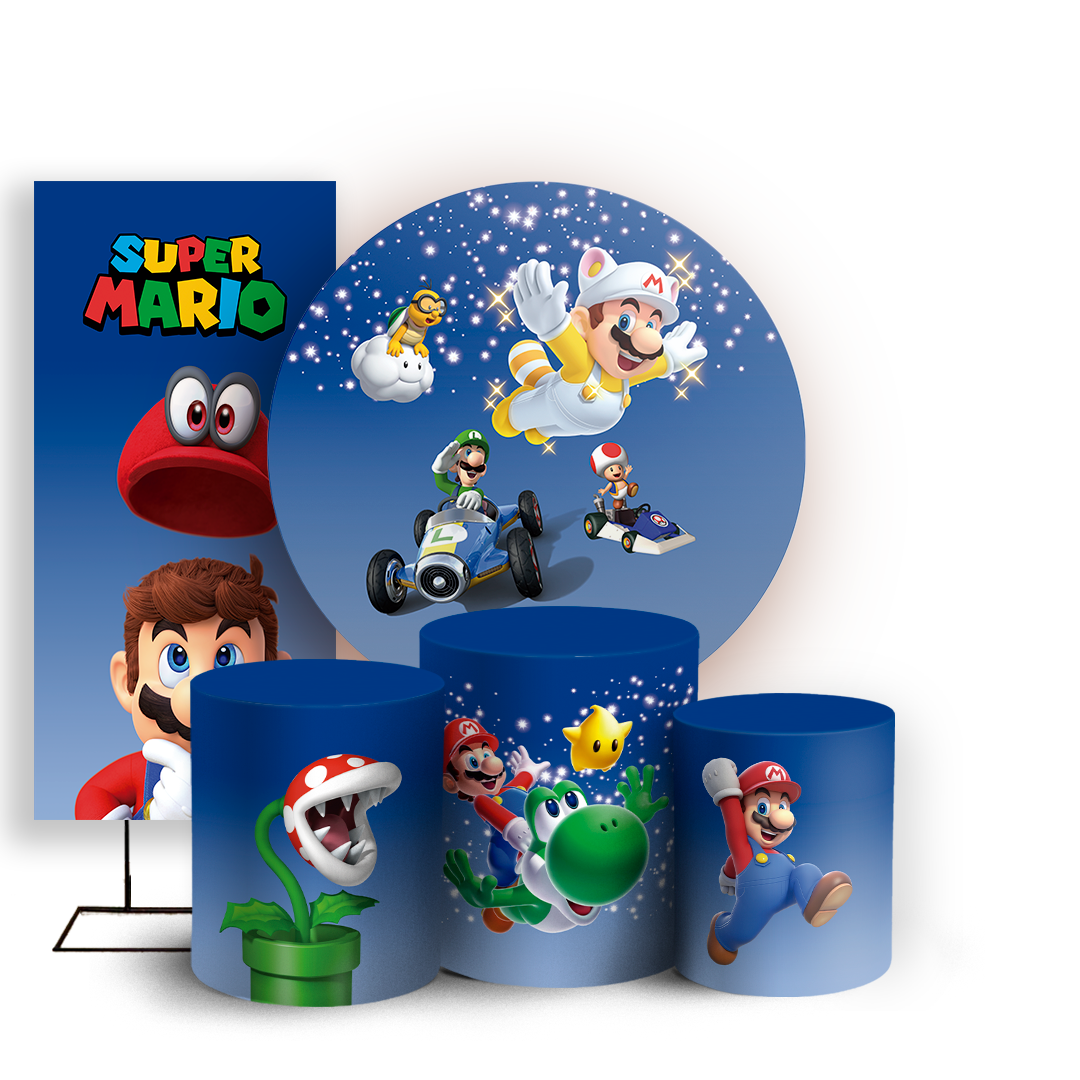 KIT Redondo Trio e Faixa Sublimado 3D - Super Mario