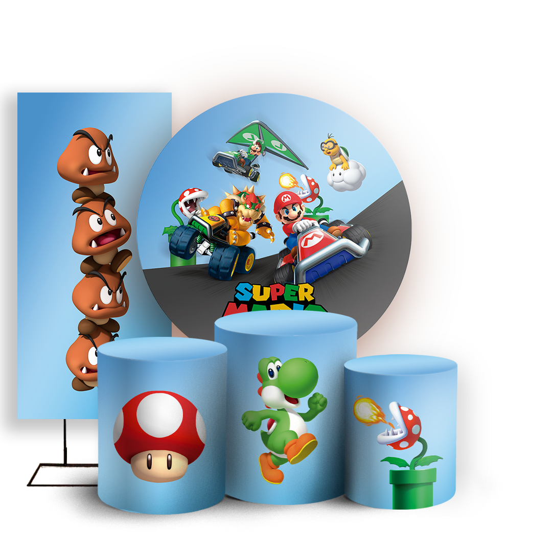 KIT Redondo Trio e Faixa Sublimado 3D - Super Mario