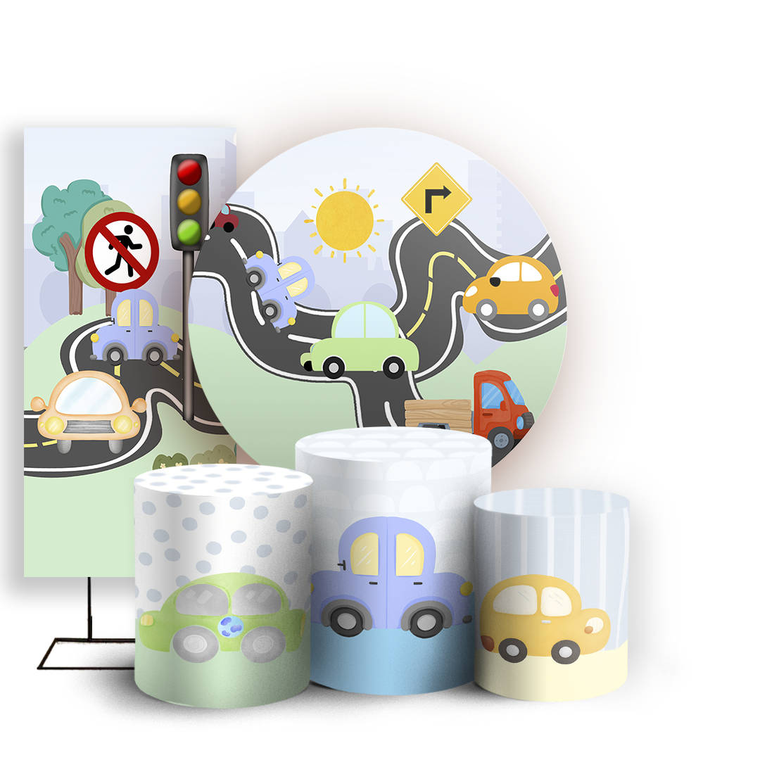 Com o kit Redondo, Trio de capas e Faixa lateral você criar uma decoração criativa para qualquer festa ou evento.