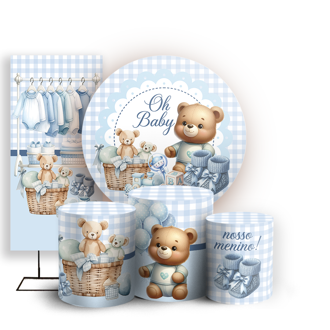 KIT Redondo Trio e Faixa Sublimado 3D - Ursinho Azul