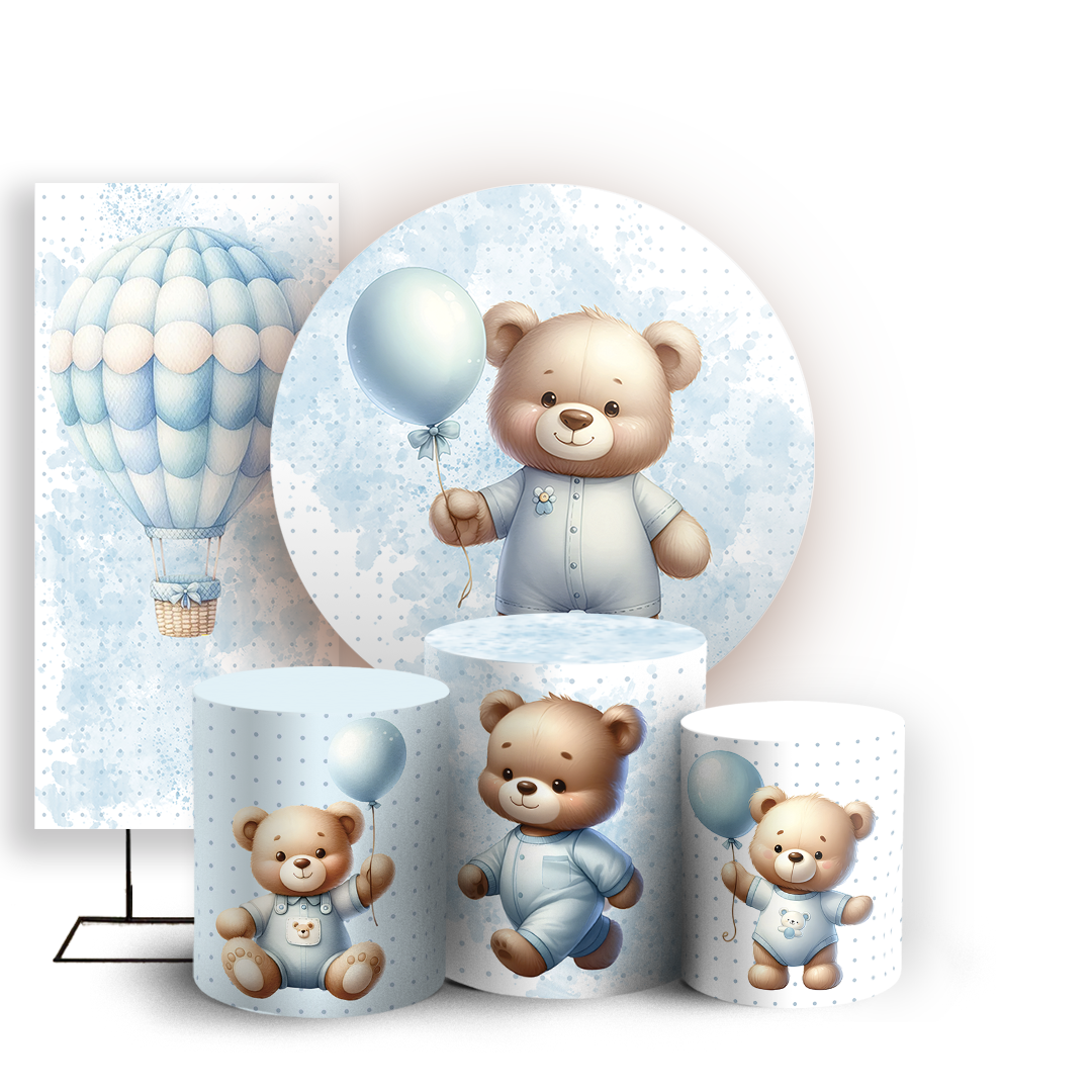 KIT Redondo Trio e Faixa Sublimado 3D - Ursinho Azul