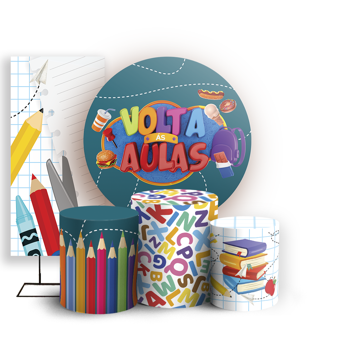 KIT Redondo Trio e Faixa Sublimado 3D - Volta as Aulas