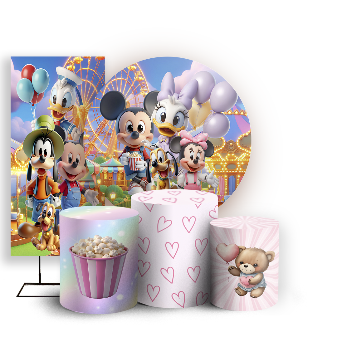 KIT Redondo Trio e Faixa - Turma Do Mickey E Minnie - Sublimado 3D