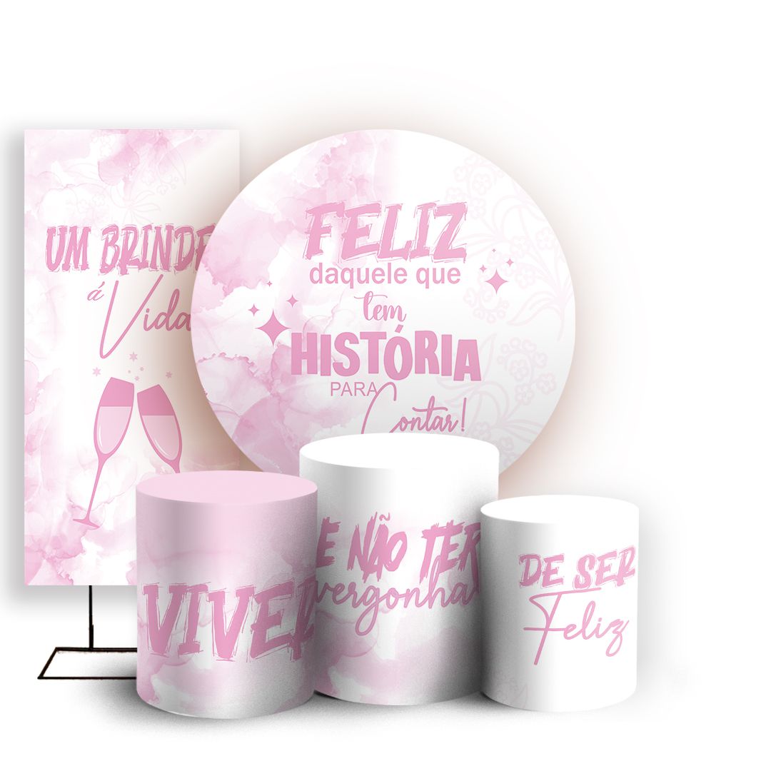 Capas Painel Redondo Trio Cilindro e Faixa Lateral Sublimado - Um Brinde a Vida
