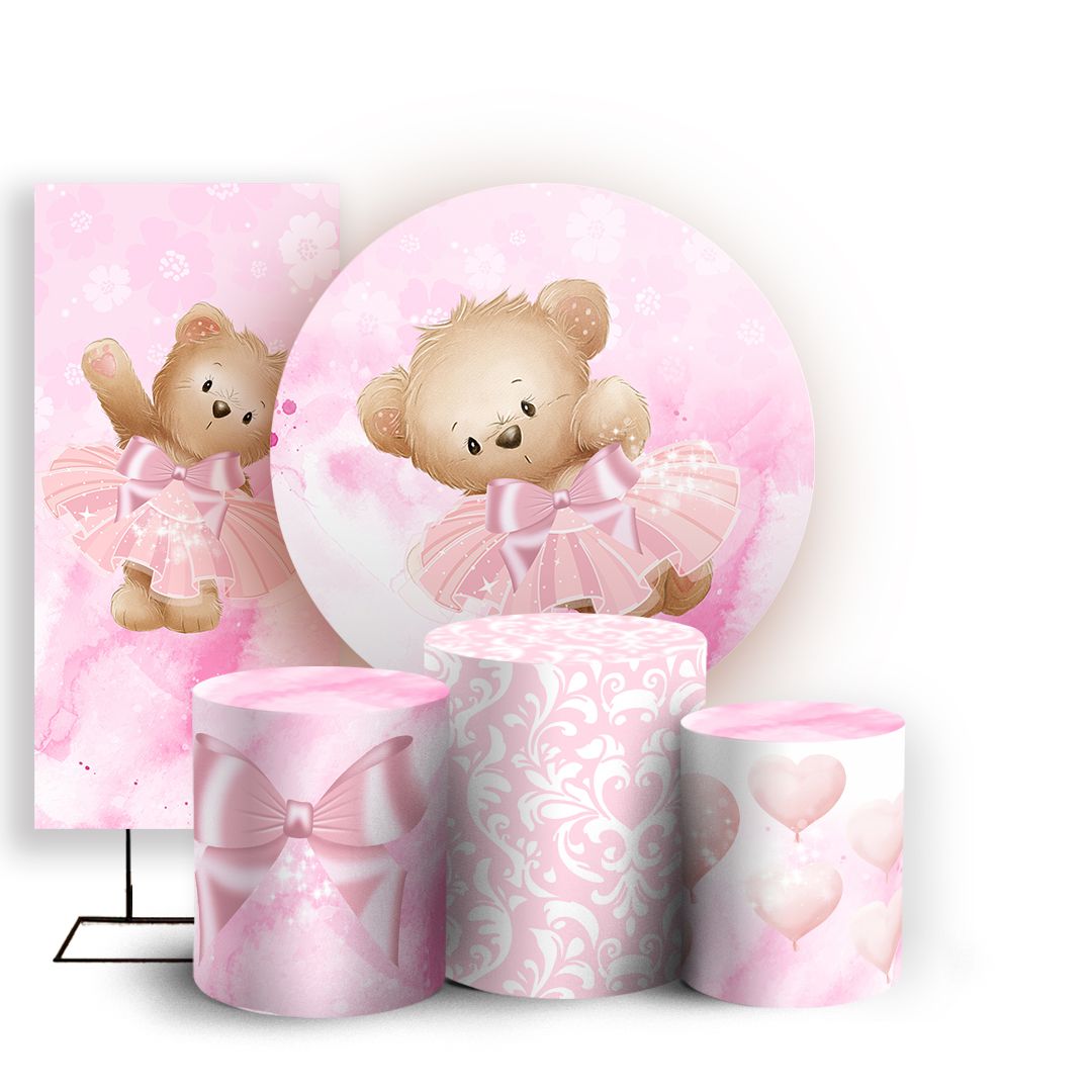 KIT Redondo Trio e Faixa - Ursinha Bailarina - Sublimado 3D