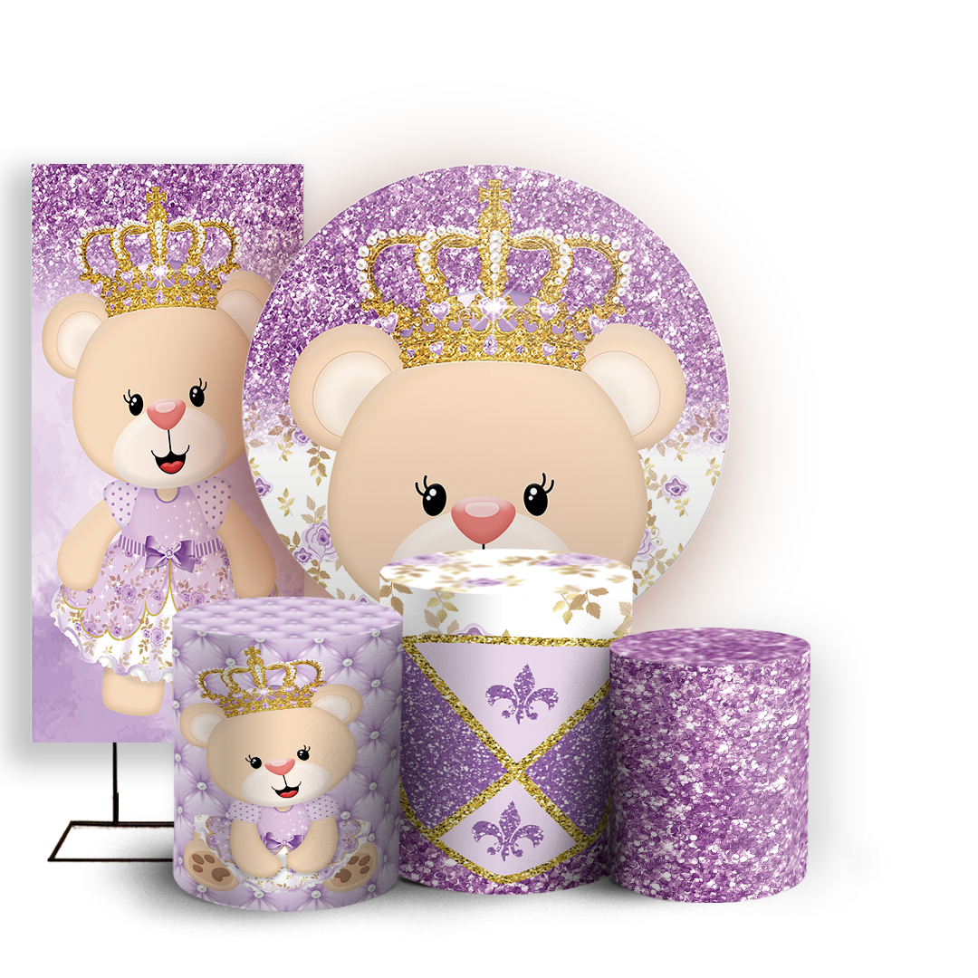 KIT Redondo Trio e Faixa - Ursinha Lilas - Sublimado 3D
