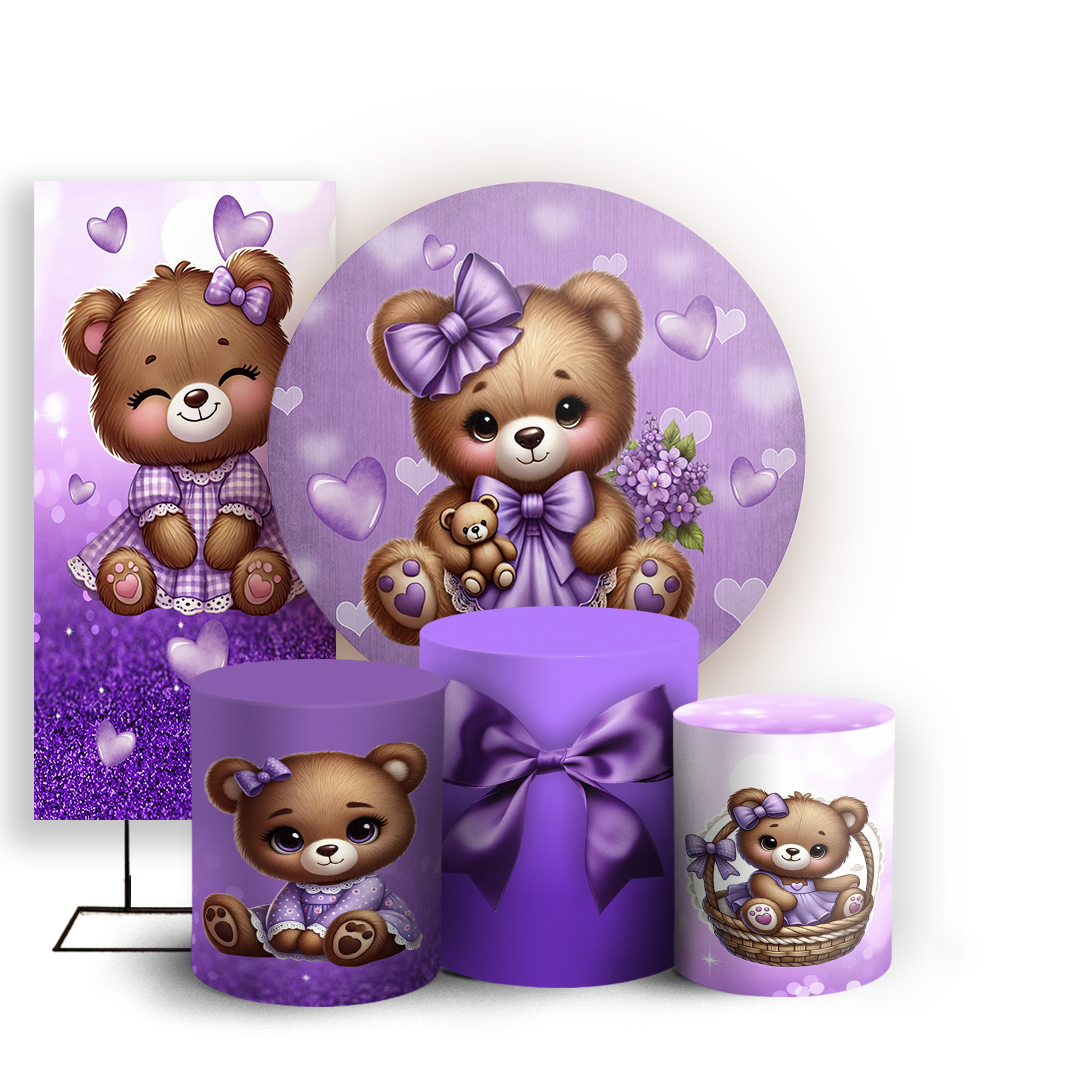 KIT Redondo Trio e Faixa - Ursinha Roxa - Sublimado 3D