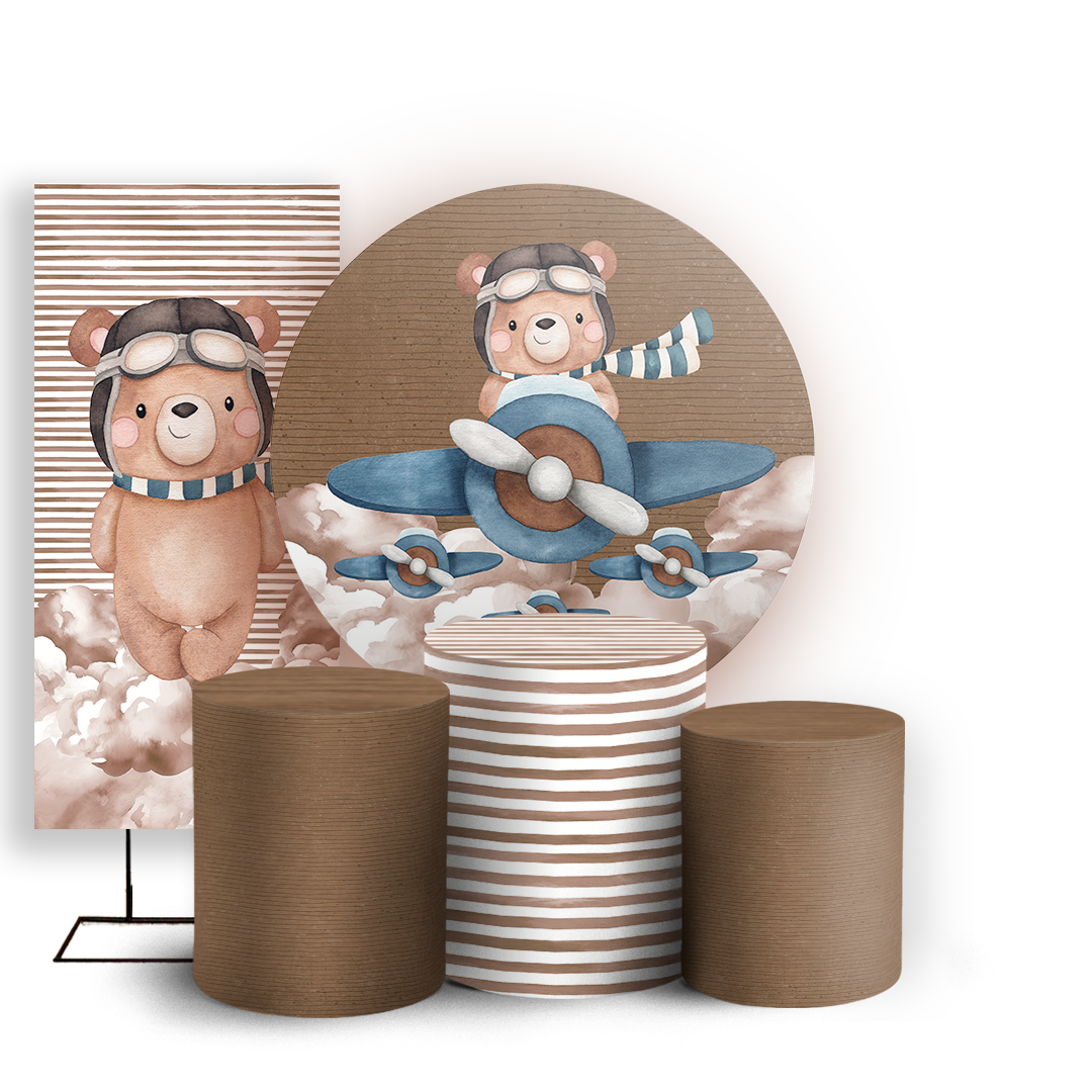 KIT Redondo Trio e Faixa - Ursinho Aviador - Sublimado 3D
