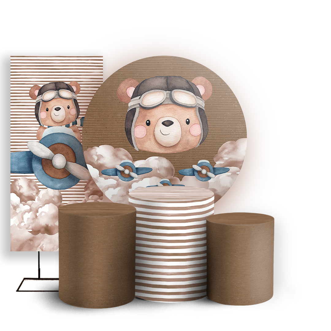 KIT Redondo Trio e Faixa - Ursinho Aviador - Sublimado 3D