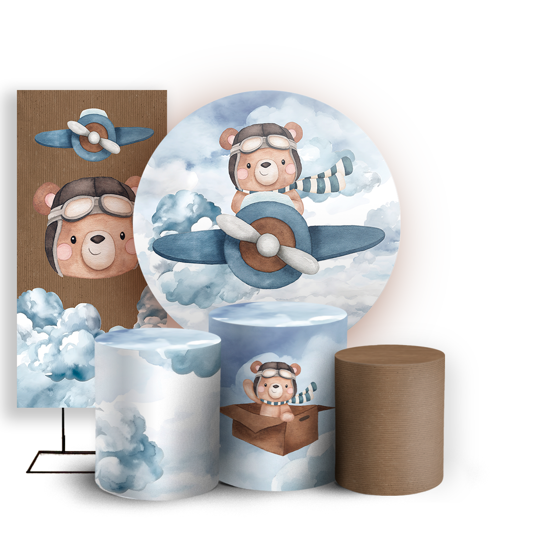 KIT Redondo Trio e Faixa - Ursinho Aviador - Sublimado 3D