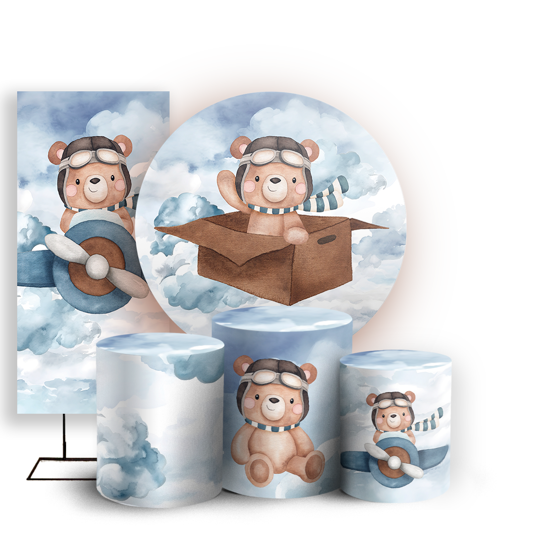 KIT Redondo Trio e Faixa - Ursinho Aviador - Sublimado 3D