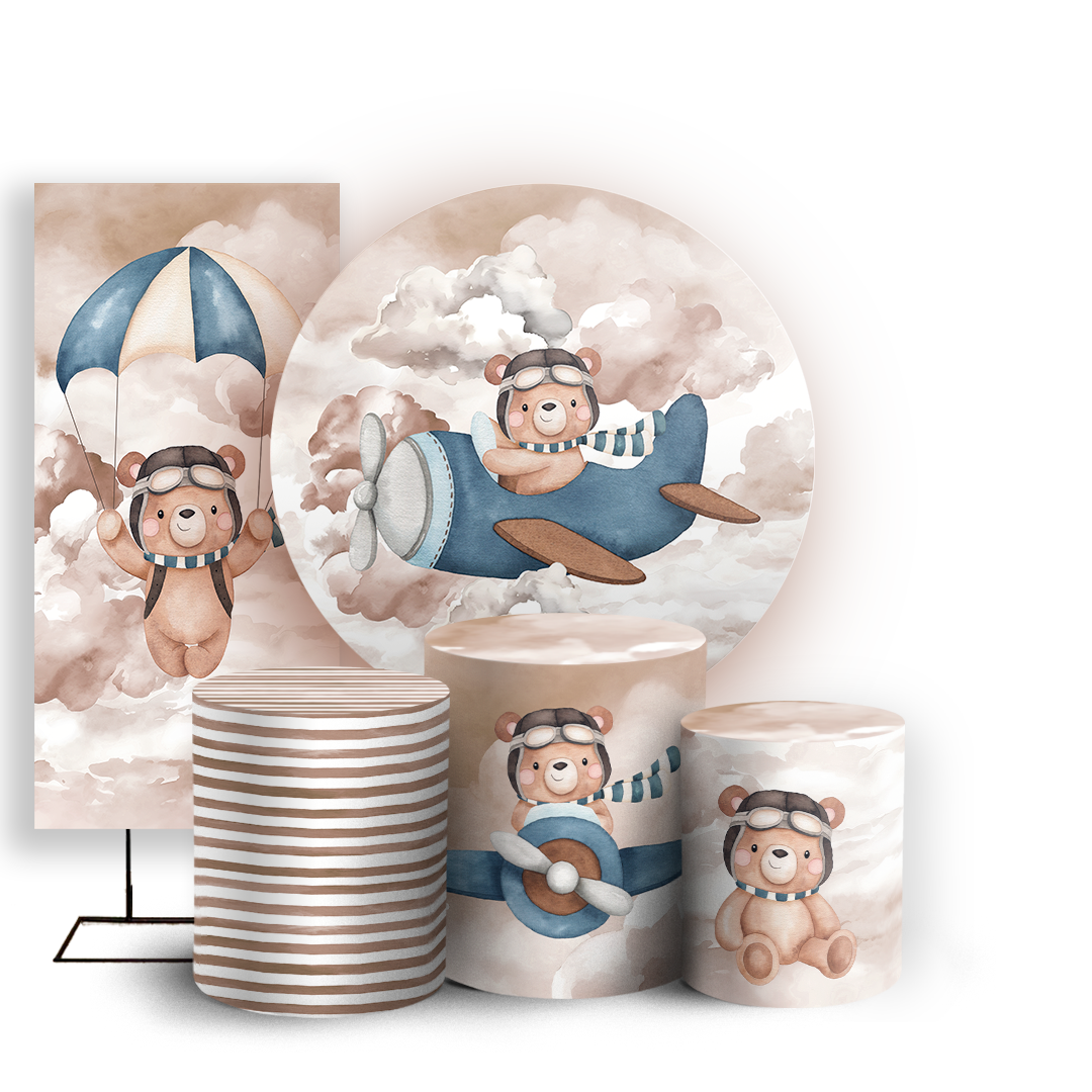 KIT Redondo Trio e Faixa - Ursinho Aviador - Sublimado 3D