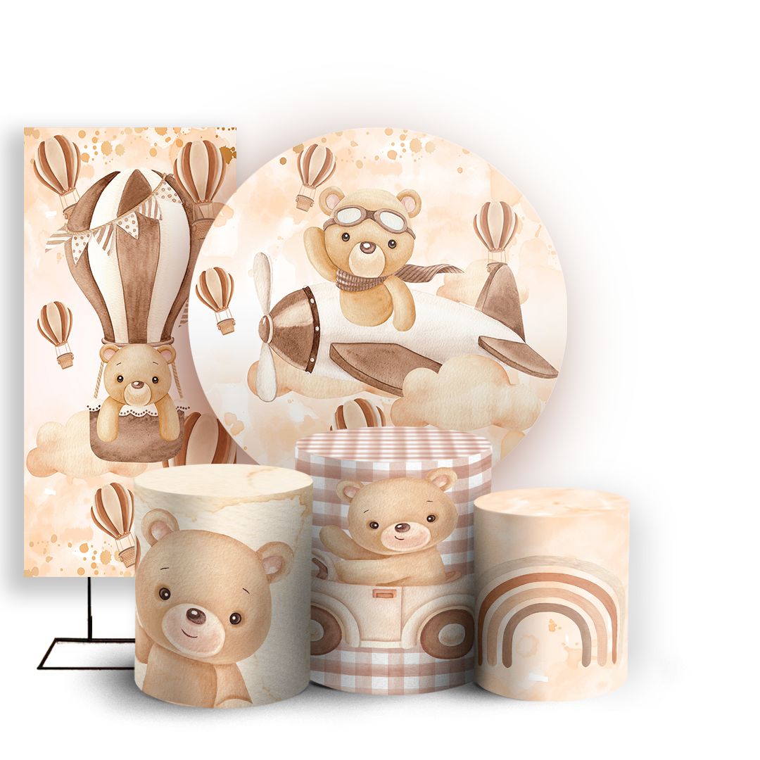KIT Redondo Trio e Faixa - Ursinho Marrom - Sublimado 3D