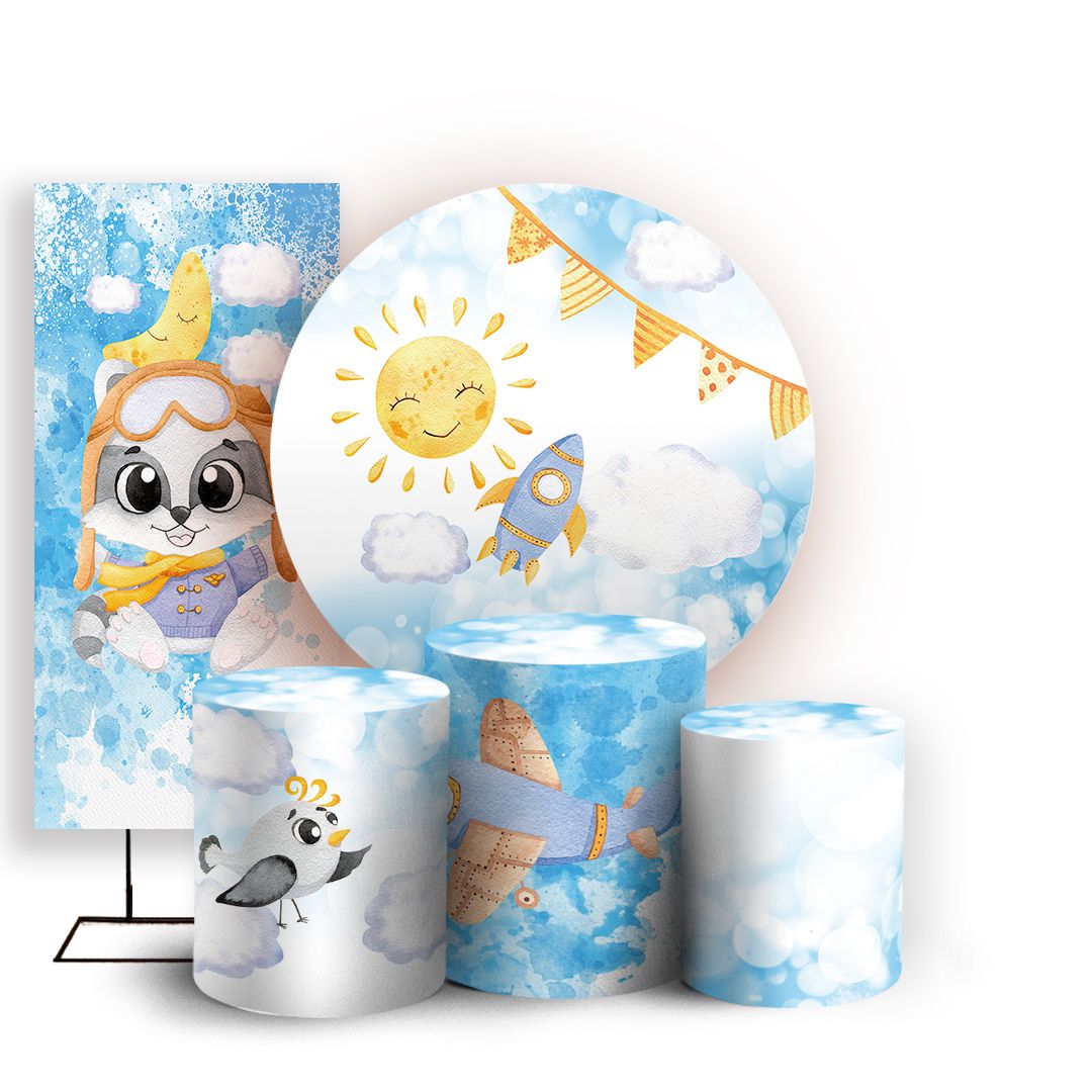Com o kit Redondo, Trio de capas e Faixa lateral você criar uma decoração criativa para qualquer festa ou evento.