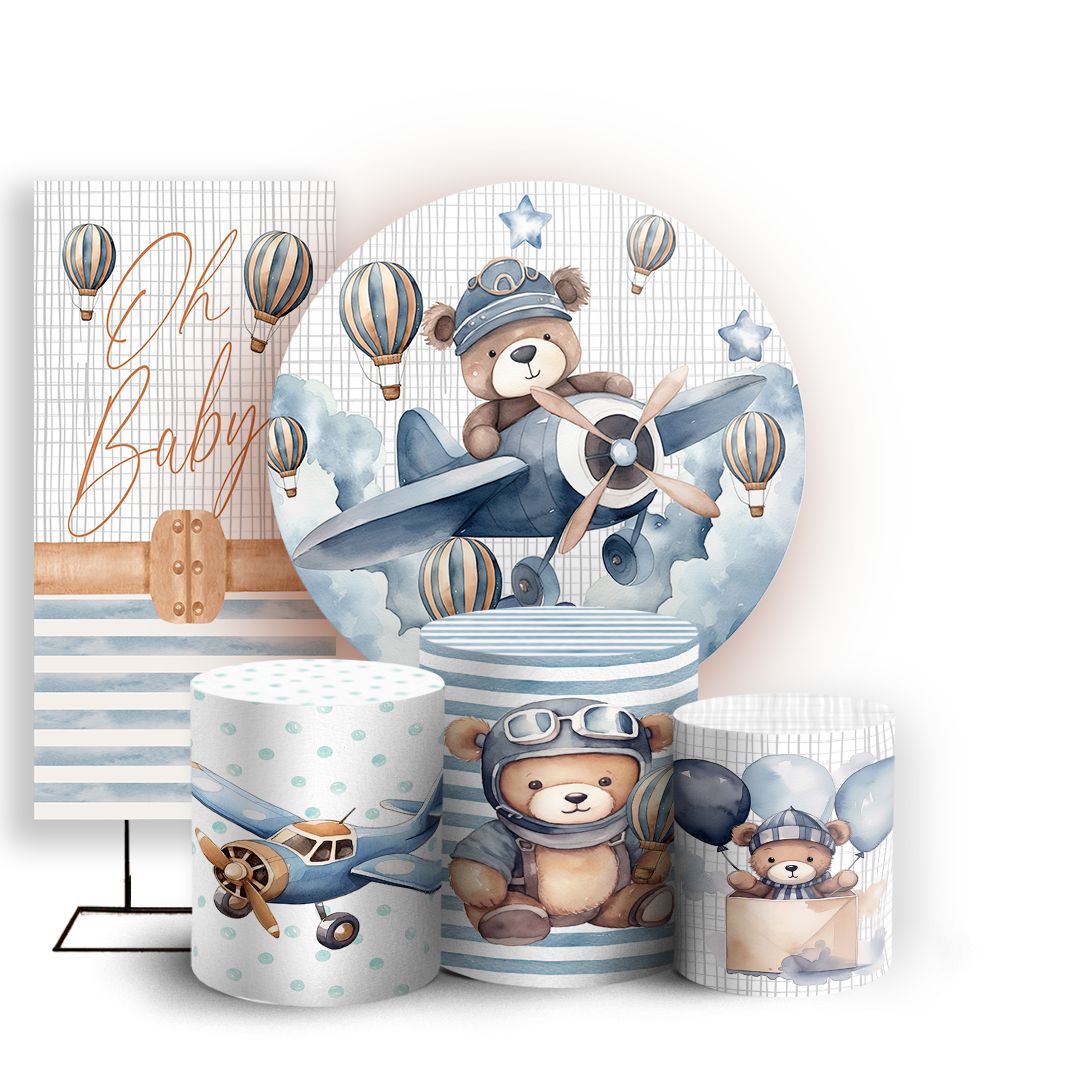Capas Painel Redondo Trio Cilindro e Faixa Lateral Sublimado - Urso Azul