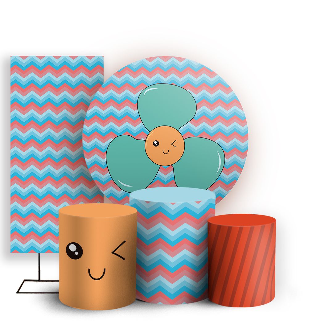 Com o kit Redondo, Trio de capas e Faixa lateral você criar uma decoração criativa para qualquer festa ou evento.