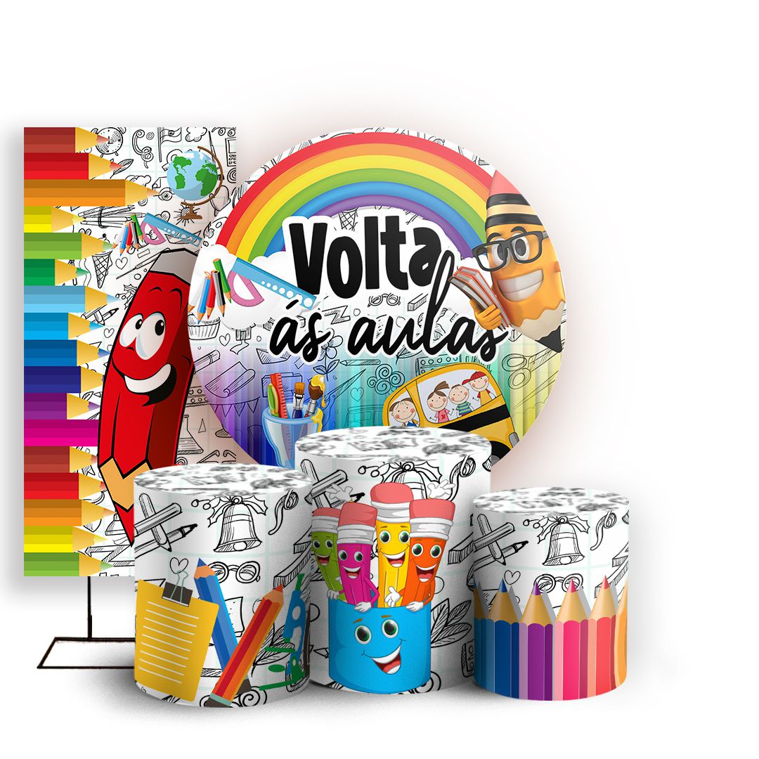 KIT Redondo Trio e Faixa - Volta as Aulas - Sublimado 3D