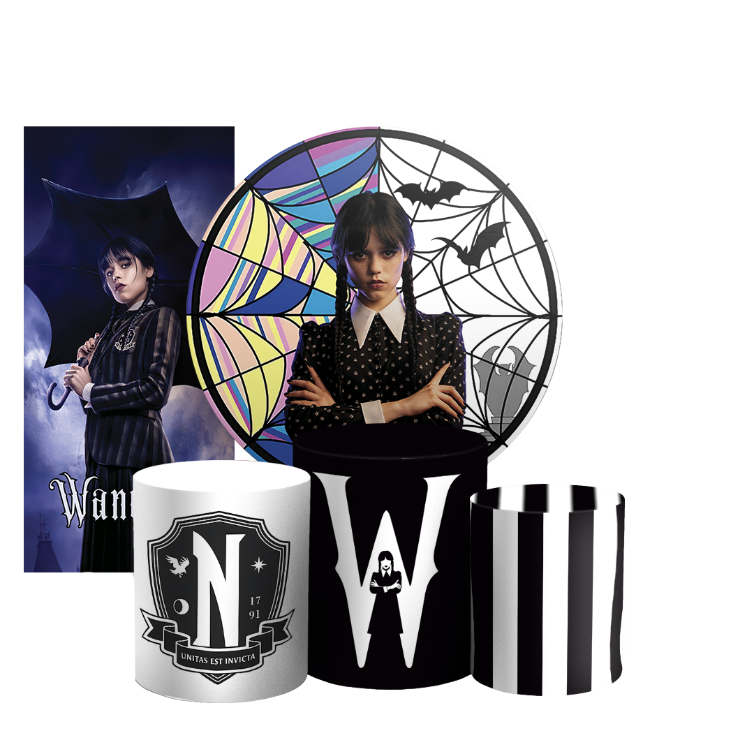 KIT Redondo Trio e Faixa Sublimado 3D - Wandinha