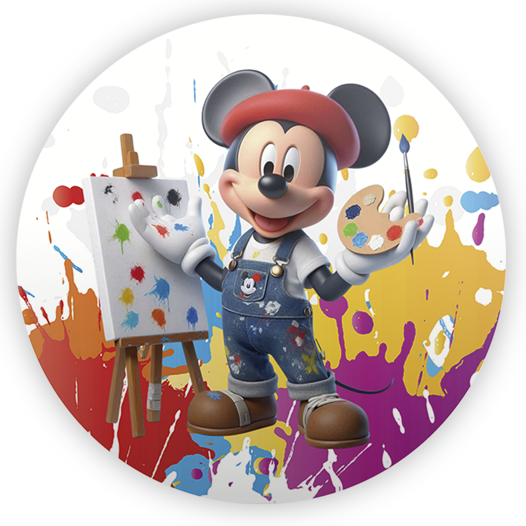 Painel Redondo - Mickey Pintor - Sublimado 3D
