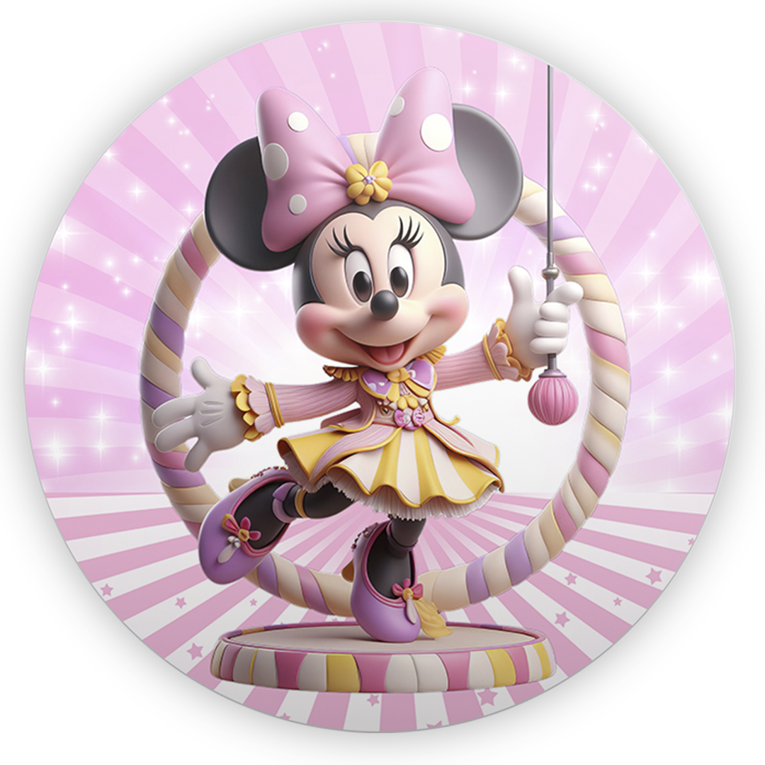 Painel Redondo Sublimado 3D - Mickey E Minnie Circo