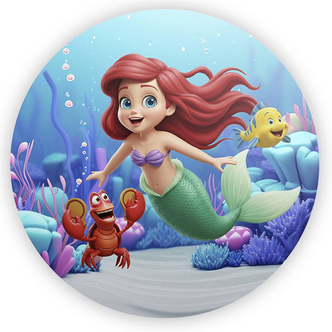 Painel Redondo Sublimado 3D - Princesa Ariel Pequena Sereia