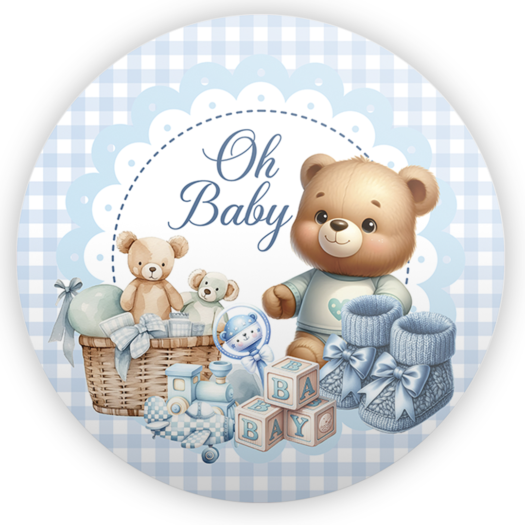 Painel Redondo Sublimado 3D - Ursinho Azul