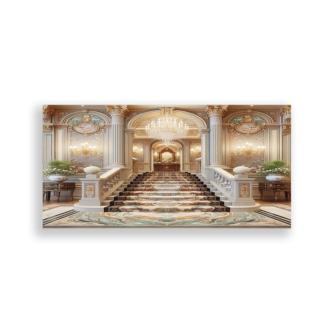 O Painel Retangular é ideal para criar cenários que preenchem todo o ambiente, garantindo decorações mais impactantes. Em formatos maiores, utilizamos uma emenda horizontal imperceptível nas câmeras, assegurando que o único foco seja a beleza e a grandiosidade do seu projeto.