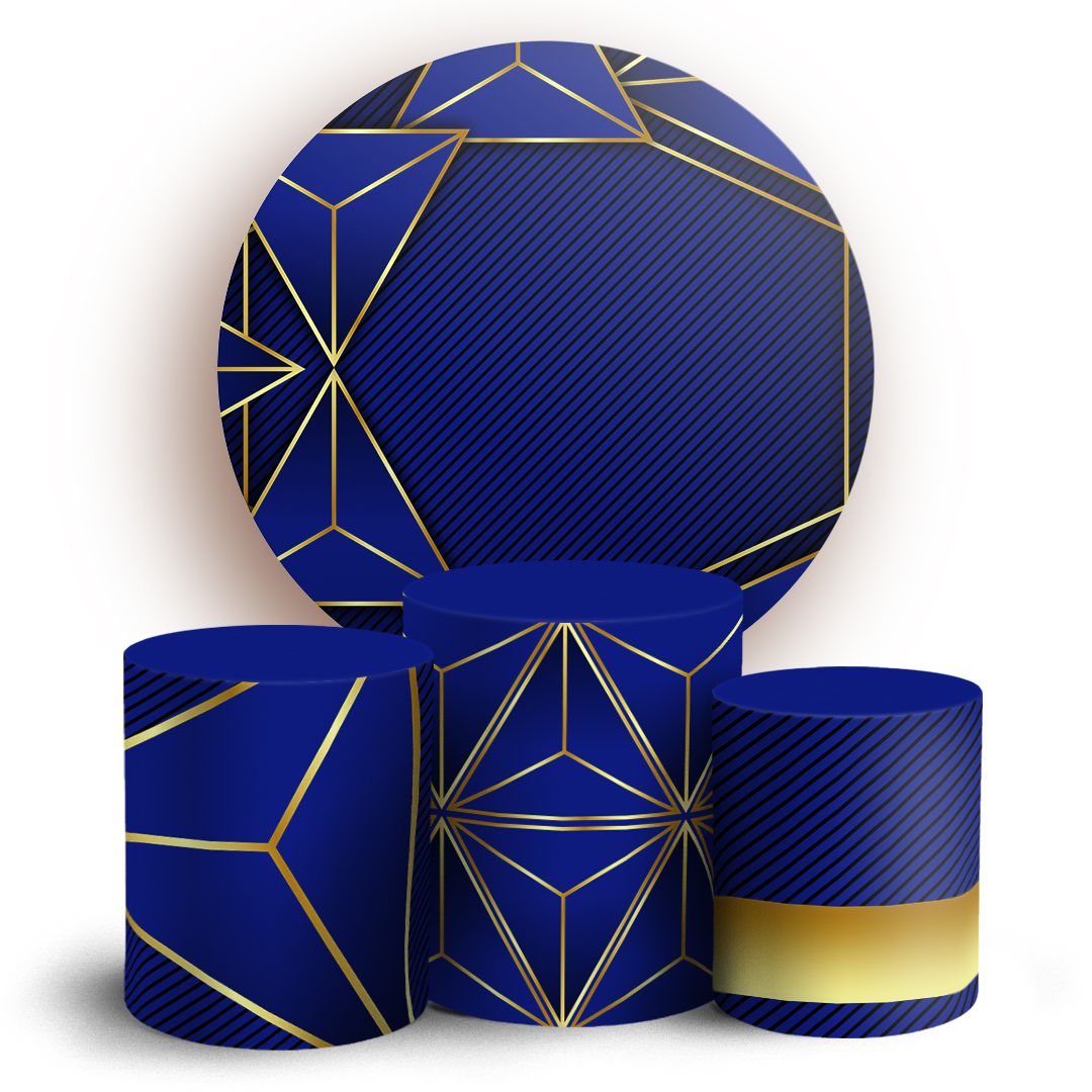 KIT Redondo e Trio - Abstrato Azul - Sublimado 3D