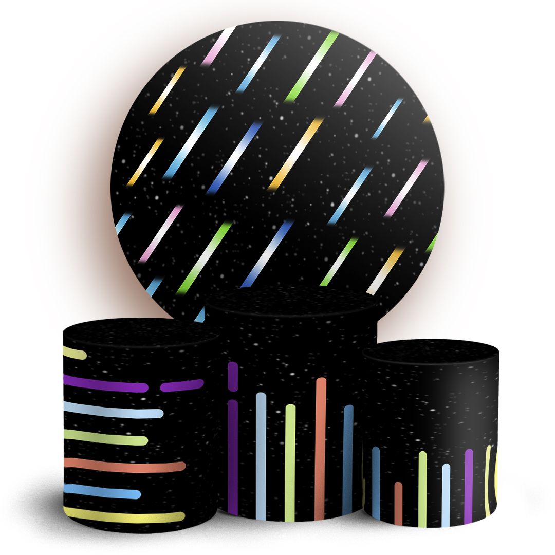 O kit Painel Redondo + Trio de capas para cilindros sublimados veste fácil, possuem acabamento overloque e elásticos nas bordas para facilitar a montagem da decoração