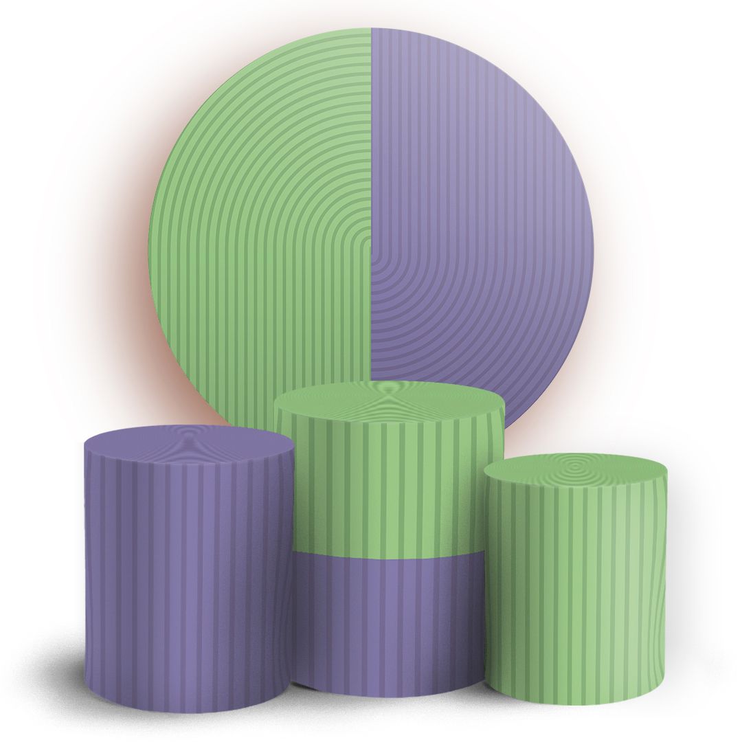 O kit Painel Redondo + Trio de capas para cilindros sublimados veste fácil, possuem acabamento overloque e elásticos nas bordas para facilitar a montagem da decoração