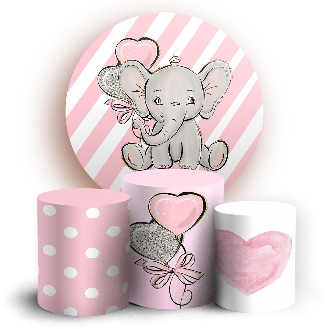 KIT Redondo e Trio - Elefantinho Rosa - Sublimado 3D