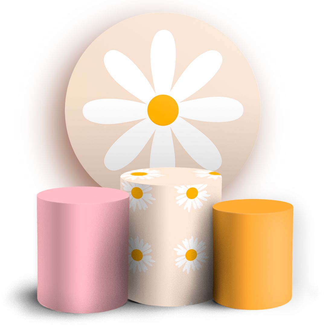 O kit Painel Redondo + Trio de capas para cilindros sublimados veste fácil, possuem acabamento overloque e elásticos nas bordas para facilitar a montagem da decoração