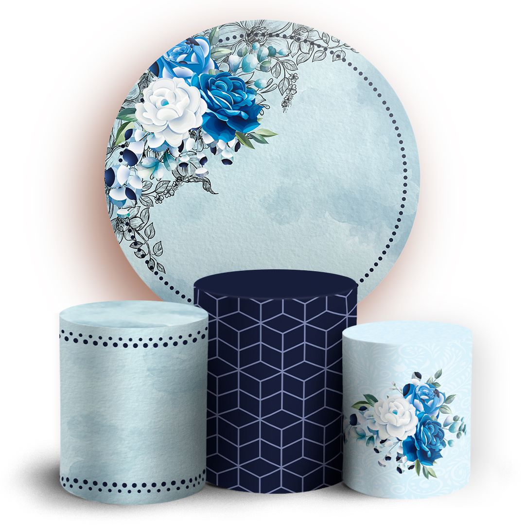 KIT Redondo e Trio - Floral Azul.jpg - Sublimado 3D