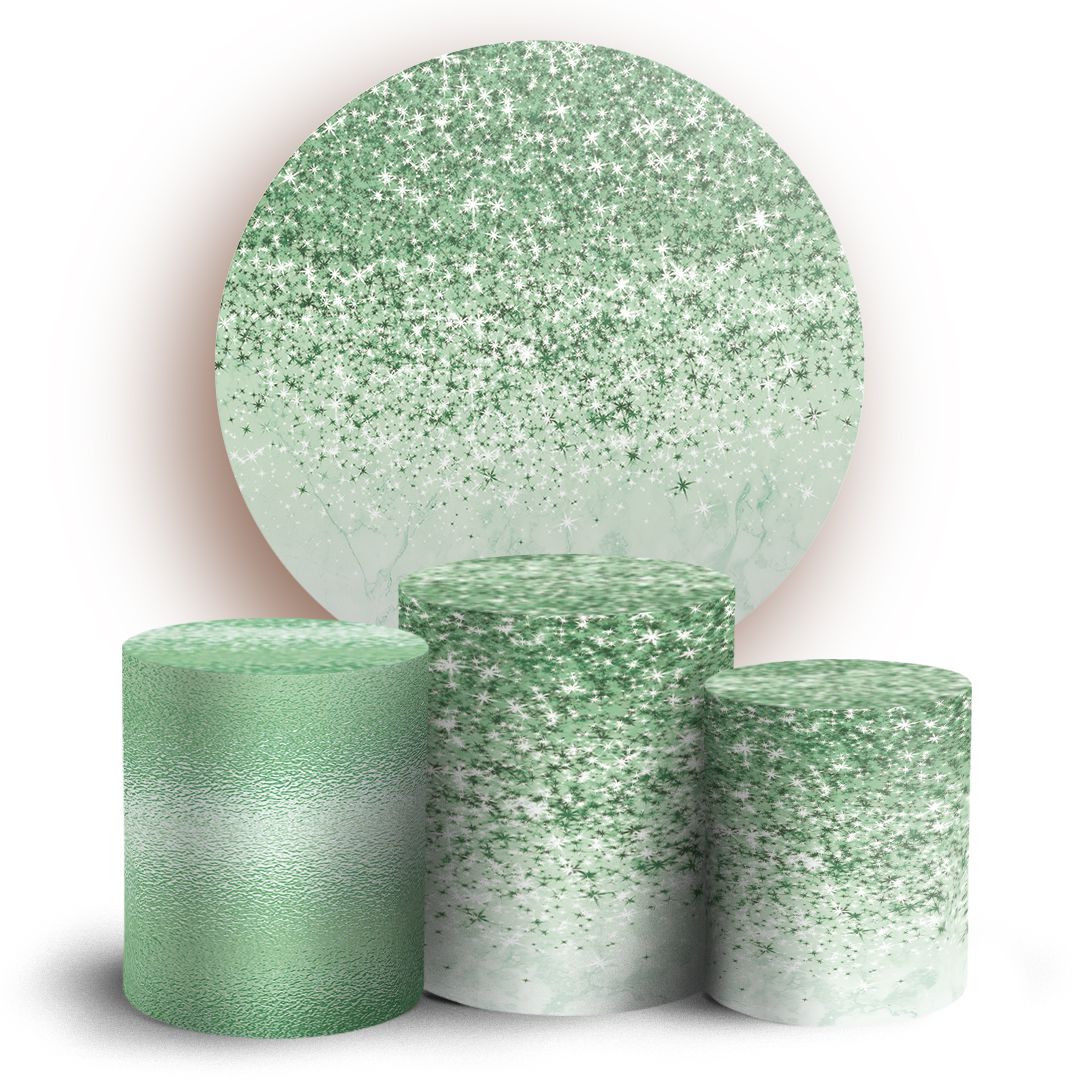 O kit Painel Redondo + Trio de capas para cilindros sublimados veste fácil, possuem acabamento overloque e elásticos nas bordas para facilitar a montagem da decoração