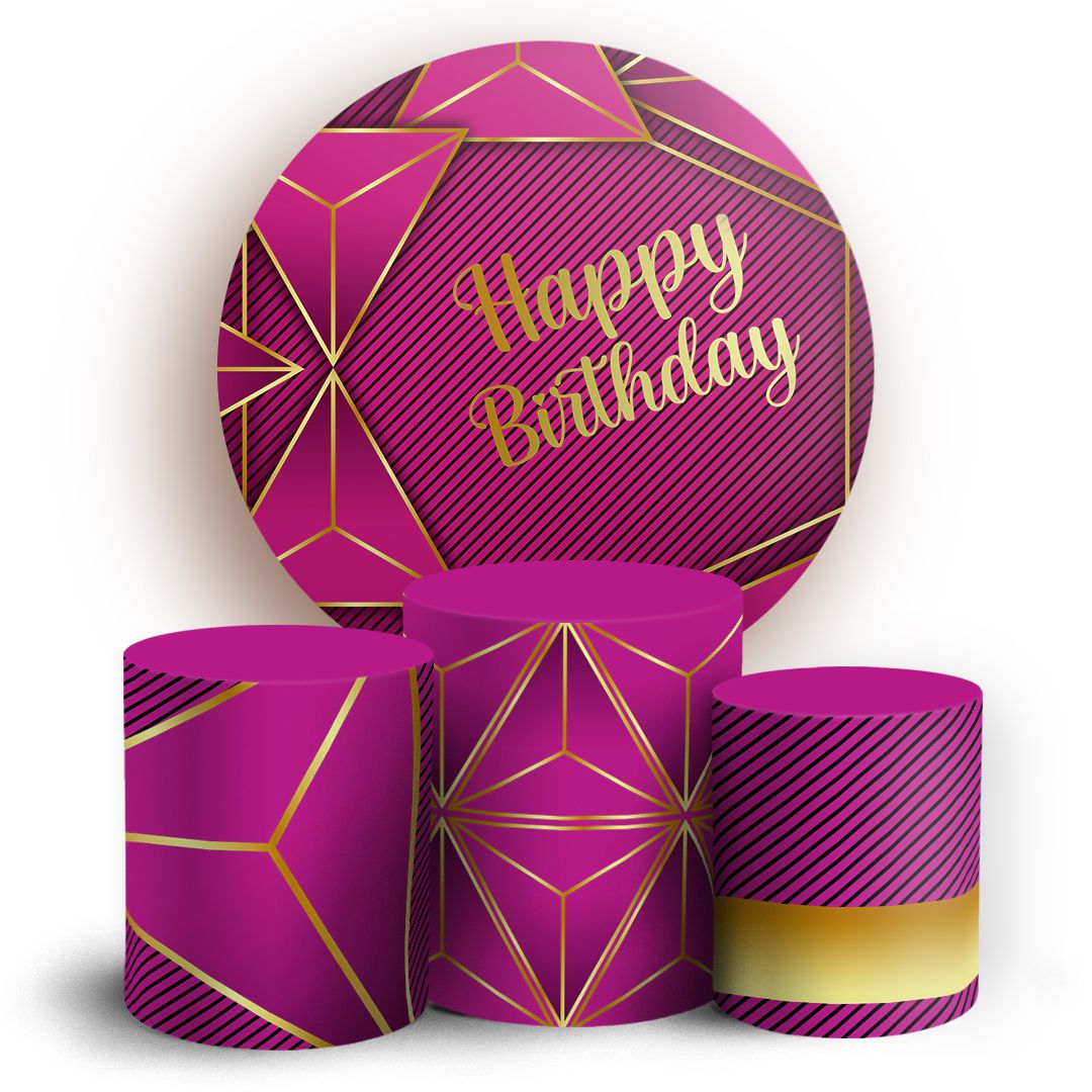 KIT Redondo e Trio - Happy Birthday Rosa - Sublimado 3D