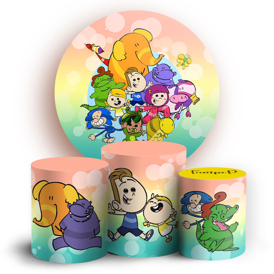 O kit Painel Redondo + Trio de capas para cilindros sublimados veste fácil, possuem acabamento overloque e elásticos nas bordas para facilitar a montagem da decoração