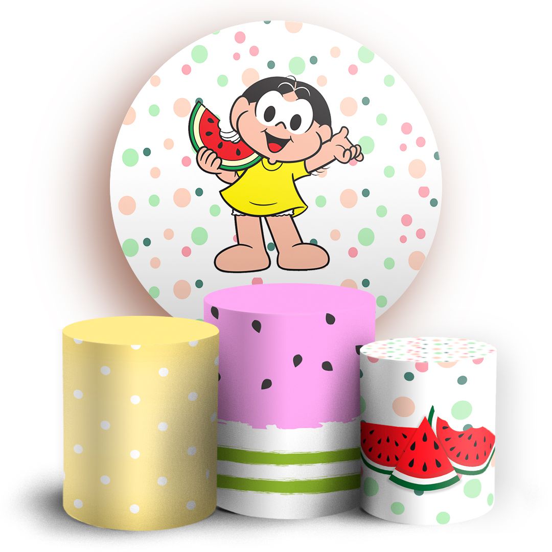 O kit Painel Redondo + Trio de capas para cilindros sublimados veste fácil, possuem acabamento overloque e elásticos nas bordas para facilitar a montagem da decoração