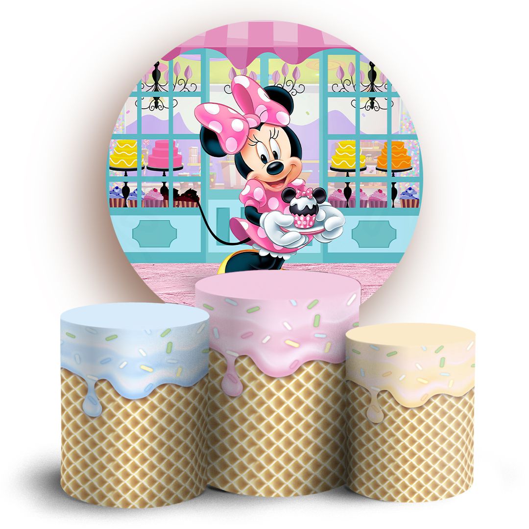 KIT Redondo e Trio - Minnie Confeiteira - Sublimado 3D
