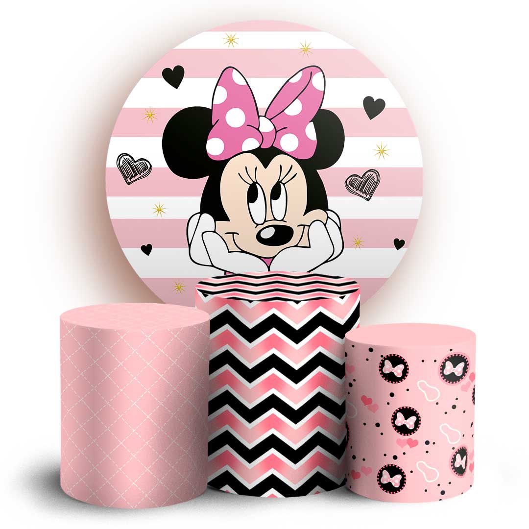 KIT Redondo e Trio - Minnie Rosa - Sublimado 3D