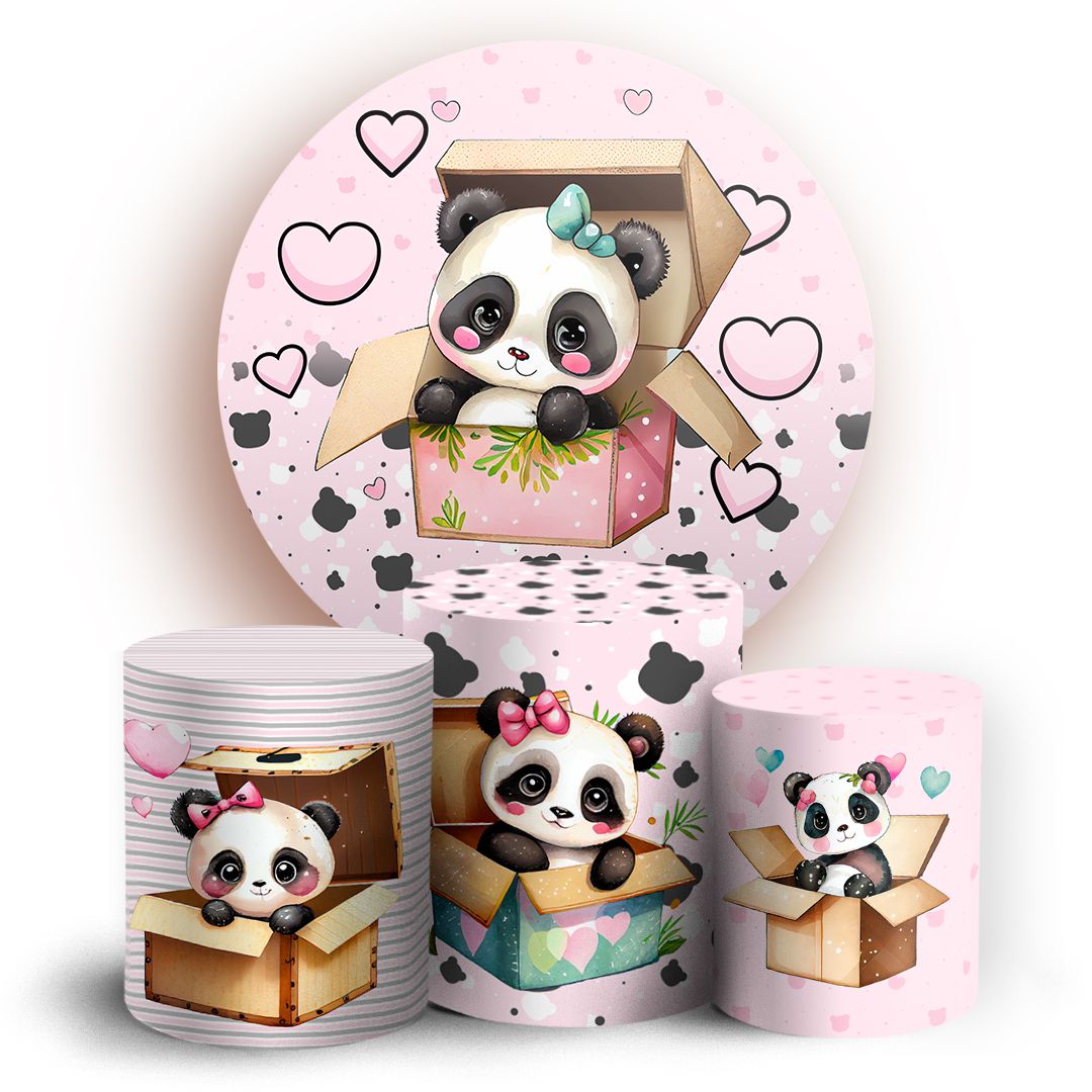 KIT Redondo e Trio - Panda Rosa - Sublimado 3D