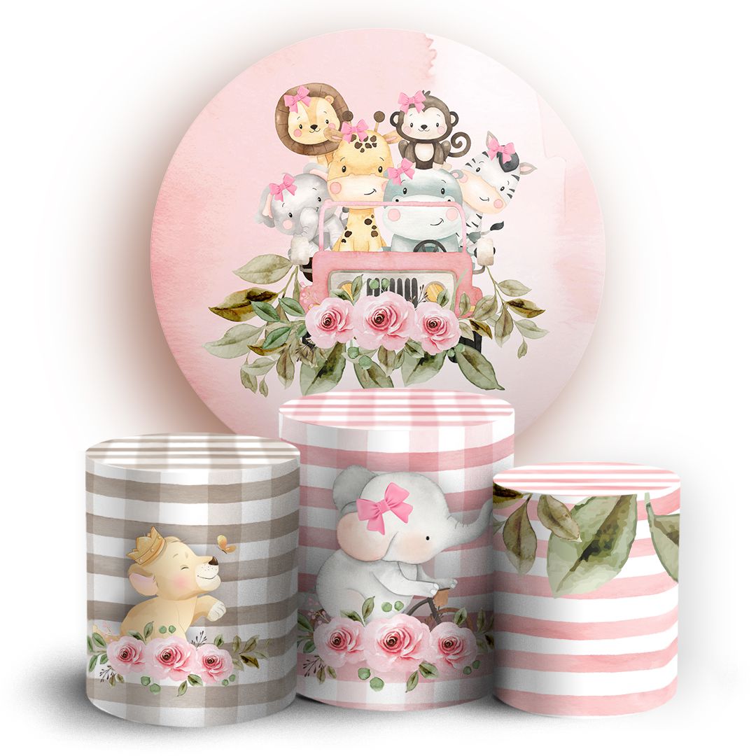 KIT Redondo e Trio - Safari Rosa - Sublimado 3D