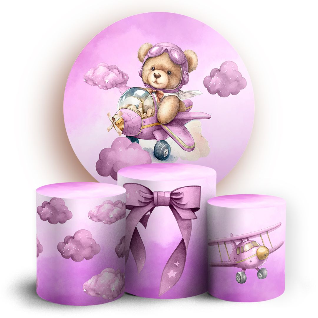 Capas Painel Redondo e Trio Cilindro Sublimado - Ursinha Rosa
