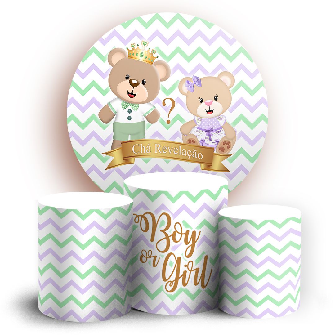 KIT Redondo e Trio - Ursinhos (chá revelação) - Sublimado 3D