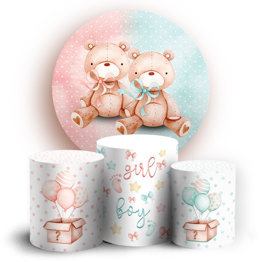 KIT Redondo e Trio - Ursinhos Chá Revelação - Sublimado 3D